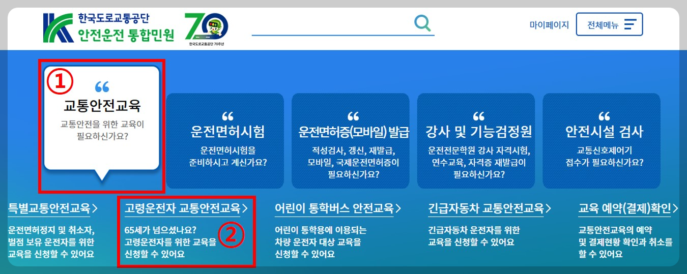 교통안전 교육센터 홈페이지 ➡ 고령운전자 교육