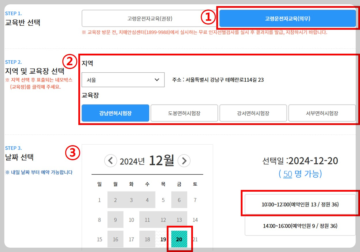 안전운전 통합민원 홈페이지 ➡ 교통안전교육 ➡ 고령운전자 교통안전교육